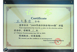 2010年亚洲品牌500强证书