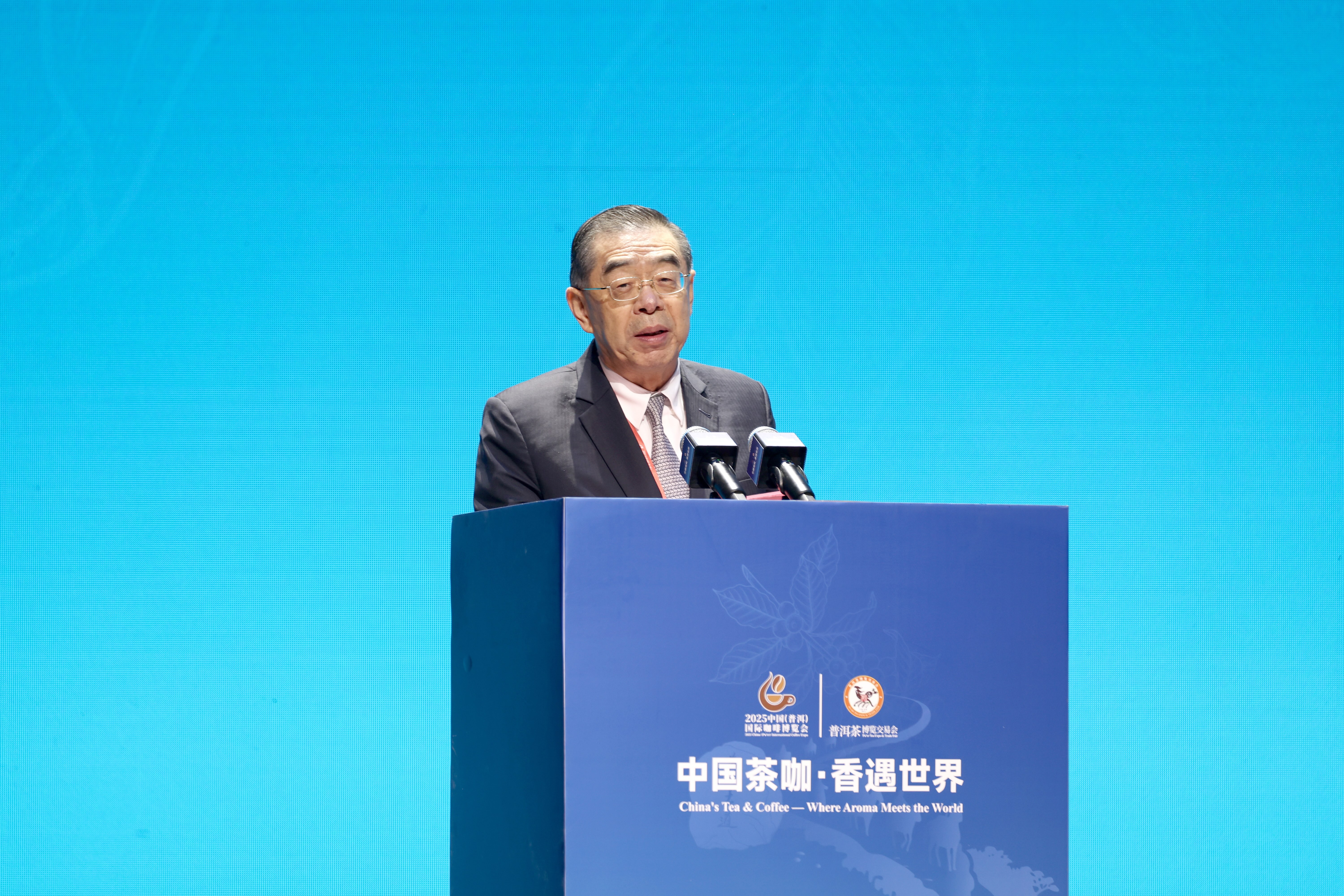 谢毅集团资深副董事长在开幕式主旨发言中分享了正大集团的发展历程,着重介绍了在普洱市委市政府大力支持下,正大集团布局咖啡产业取得的成果,以及深耕茶咖产业的布局与愿景。他表示,作为1979年进入中国大陆的第一家外商投资企业,正大集团在食品主业之外积极拓展饮品赛道,2022年于普洱落地咖啡产业,主要围绕咖啡种植端、精深加工处理、全球生豆贸易、科技研发领域、本土咖啡品牌五大核心板块展开。他指出,普洱作为千年茶香圣地,如今茶咖产业比翼齐飞,两种源自不同大陆的文化在此交融,已成为农工商深度融合的范例。他还表示,推动茶咖产业高质量发展,需业界同仁共同构建全产业链生态体系,以创新提价值、文化塑品牌、绿色促可持续。未来,正大集团将始终坚持“利国利民利企业”的经营宗旨,建设高标准示范基地、搭建产学研平台、开放全球渠道,争做产业融合的“连接器”与“助推器”,与业界同仁共建协同共生的产业生态圈。