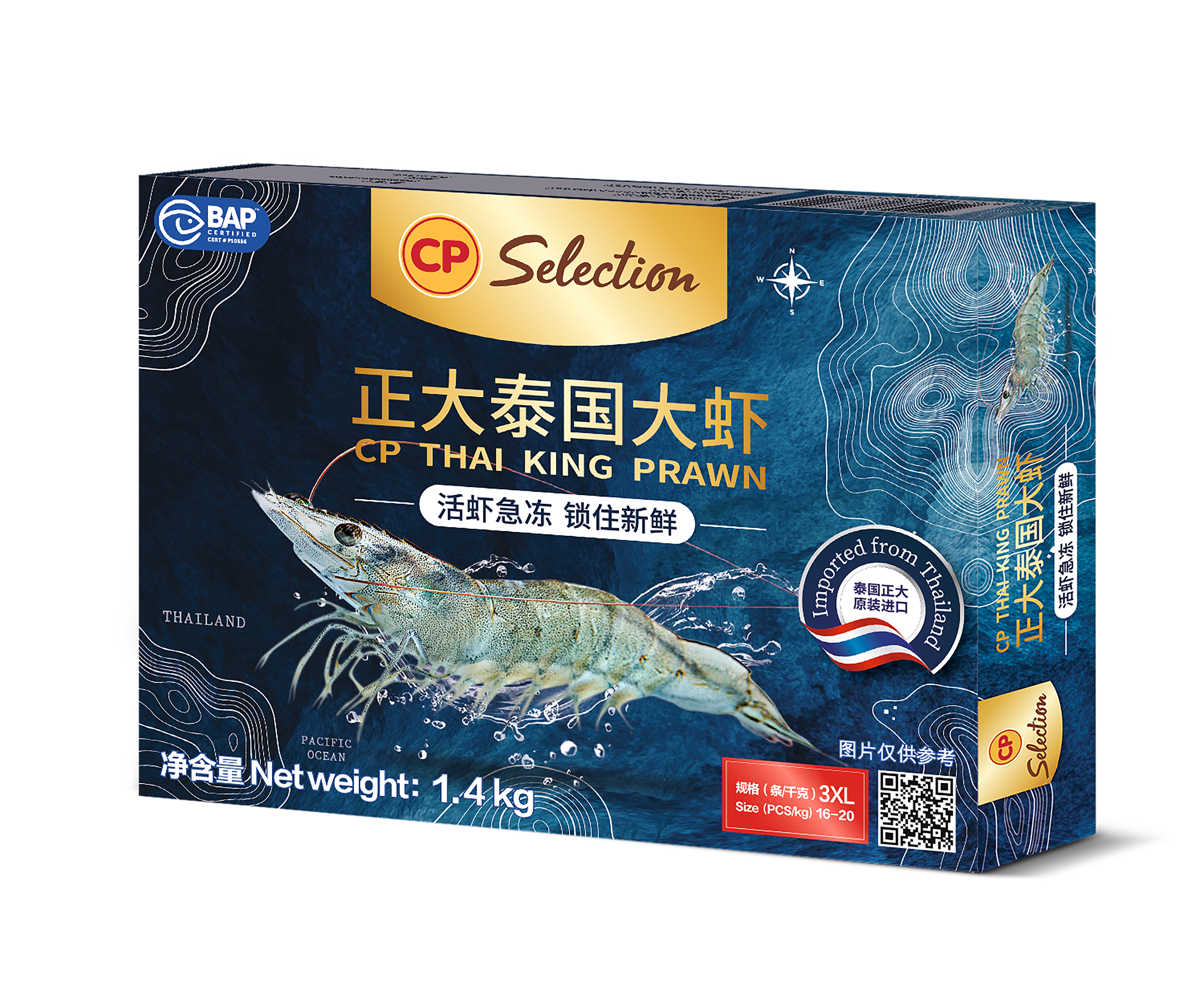 规格:净含量:1.4千克/盒 箱规:6盒/箱 规格:13-15、16-20、21-25、26-30、31-40、41-50,51-60