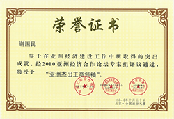 2010年谢国民亚洲杰出工商领袖证书