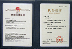 2013亚洲十大最具影响力品牌证书