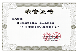 2010中国全面小康贡献企业证书