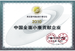 2010中国全面小康贡献企业奖状