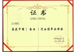 中国(食品)行业领军品牌奖牌